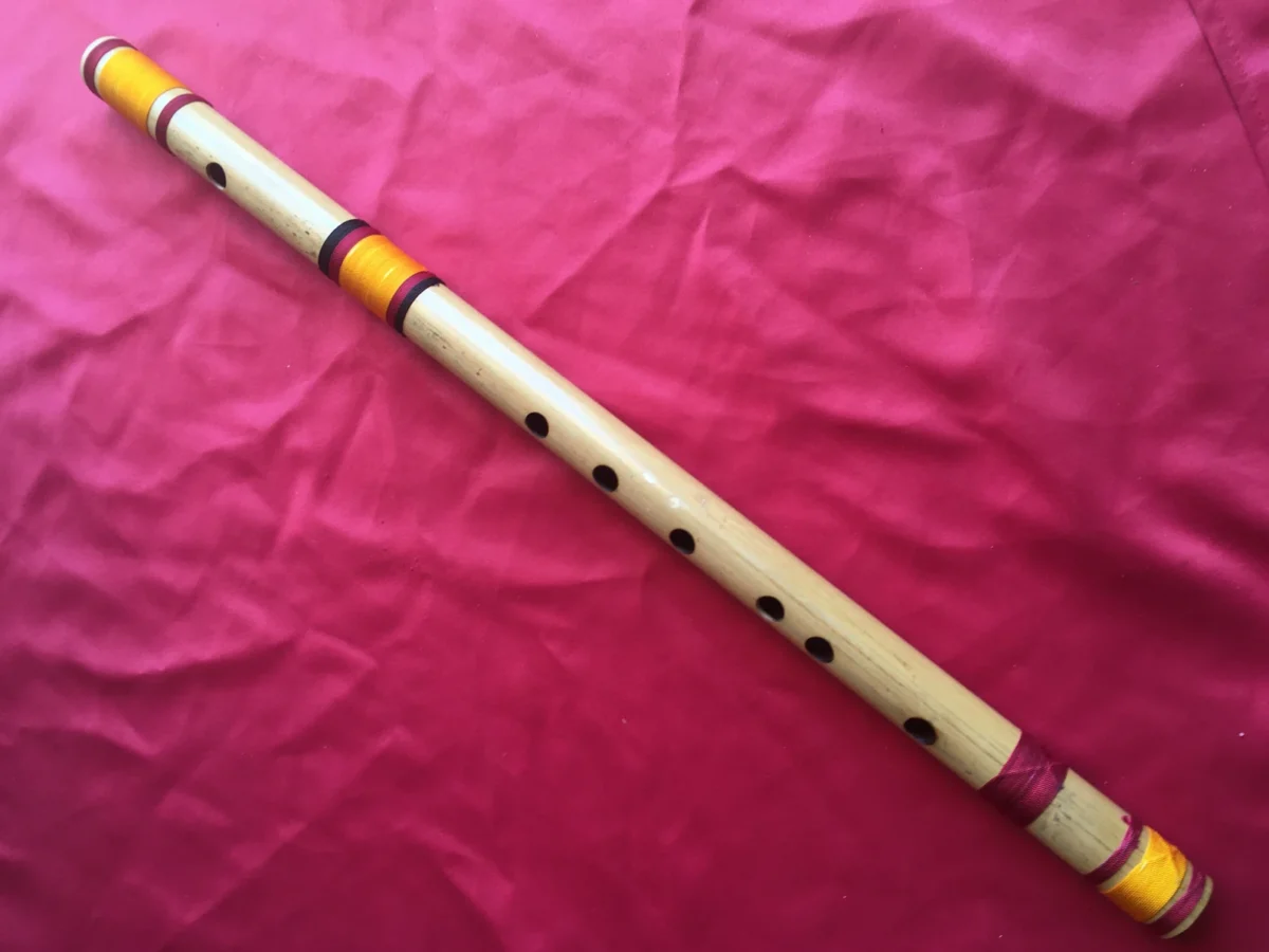 This is a G BANSURI (low pitch) in the Indian system – meaning 3 holes covered will play note G .